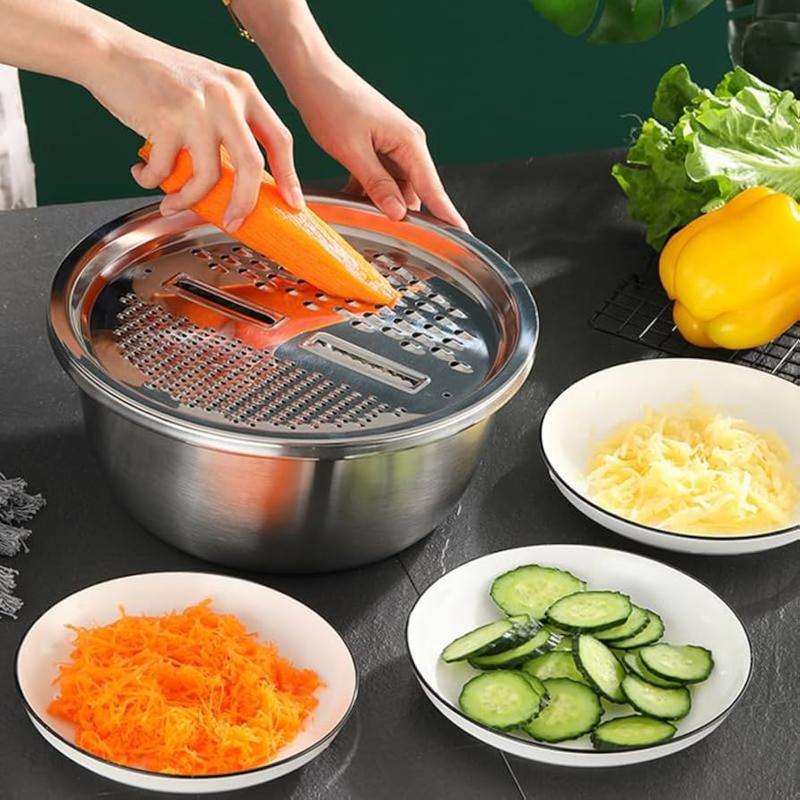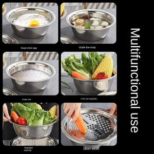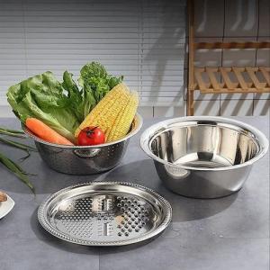 3-in-1 Multifunctional Stainless Steel Basin With Grater, Vegetable Cutter with Drain Basket
